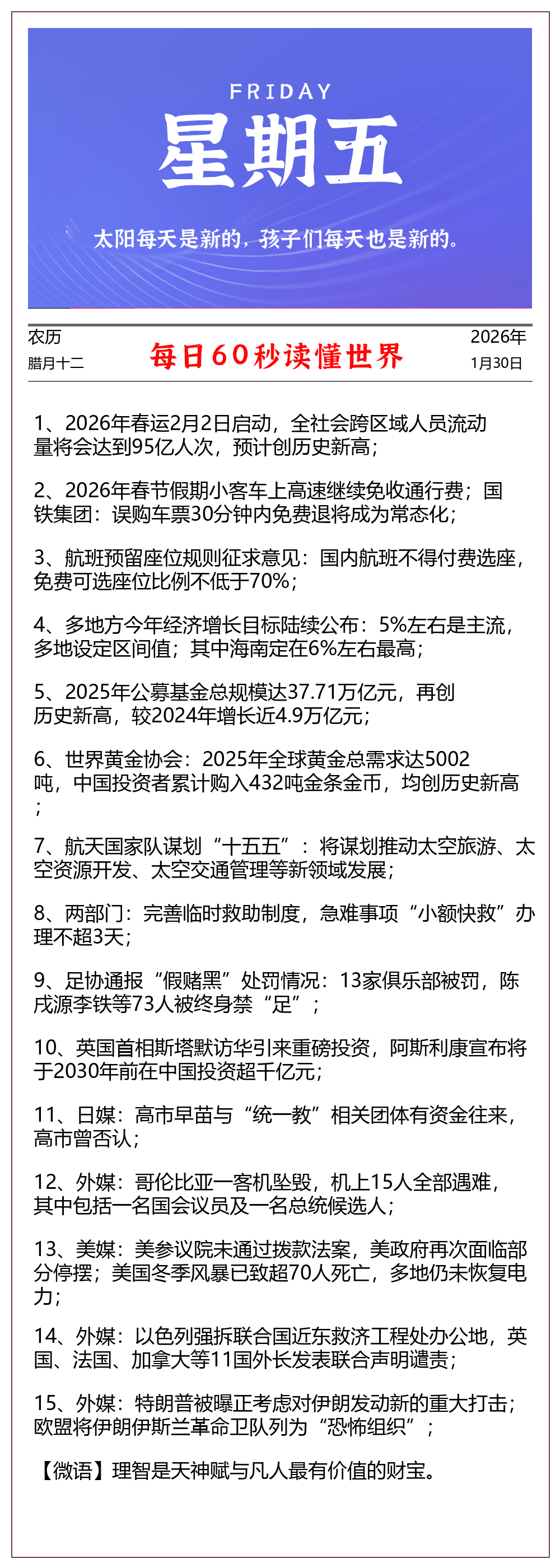 【每日早报】-2026-01-30 - 星期五