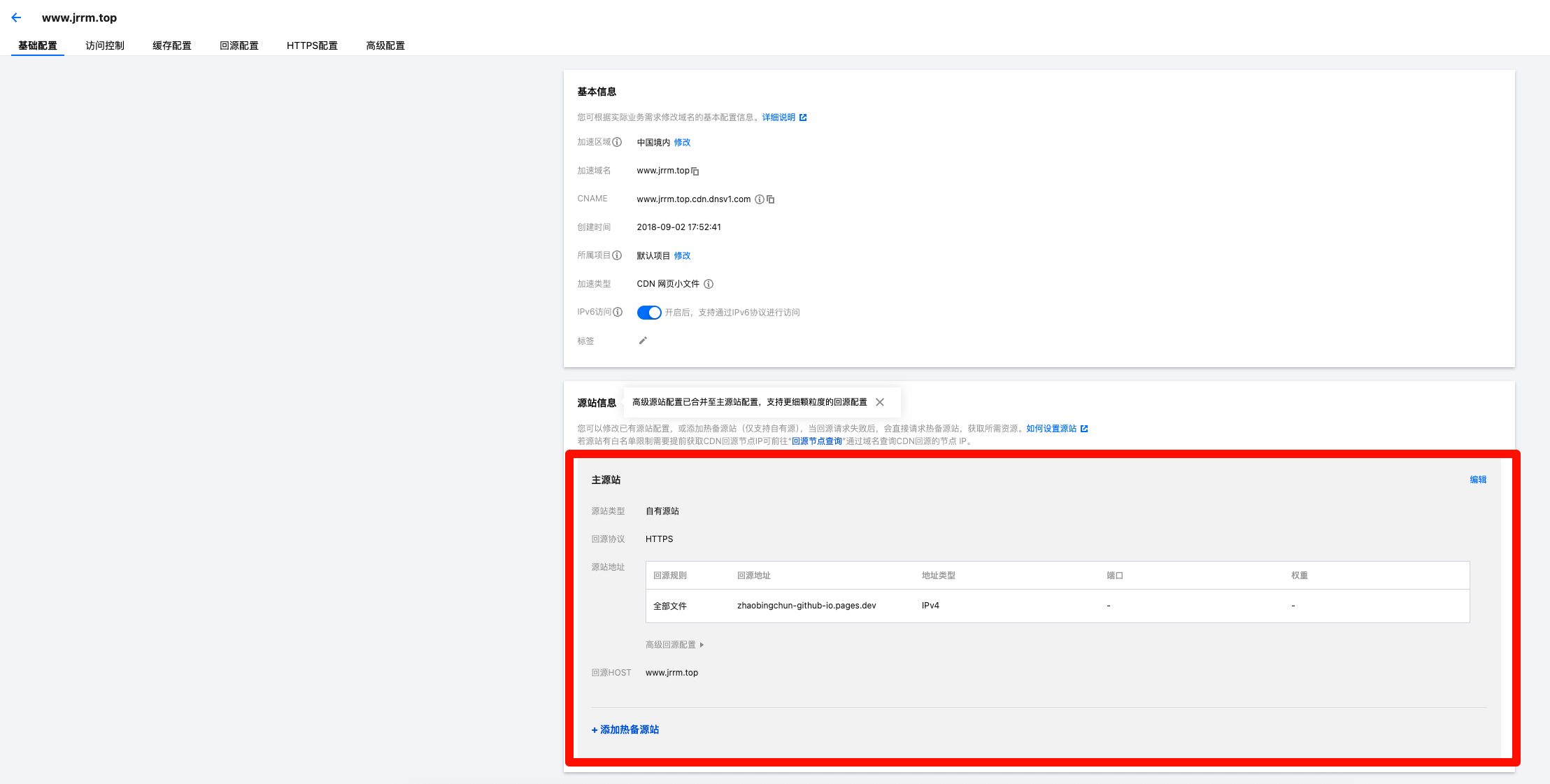 由于 cloudflare 的pages 是国外的,所以访问速度比较慢,于是我考虑将博客使用国内CDN进行加速,并且通过 DNS 多线路解析,将国内用户域名解析到国内CDN上。