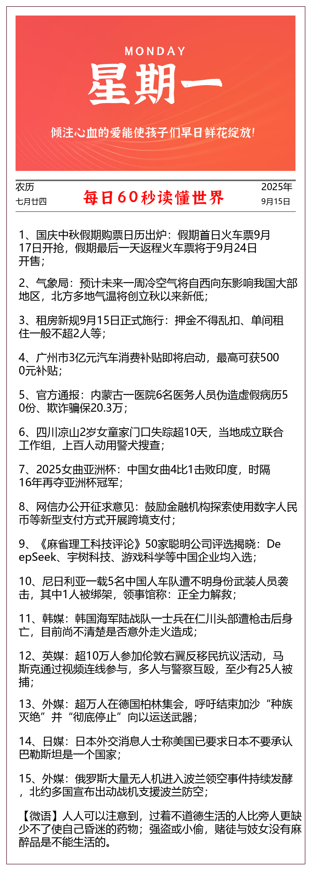 【每日早报】-2025-09-15 - 星期一