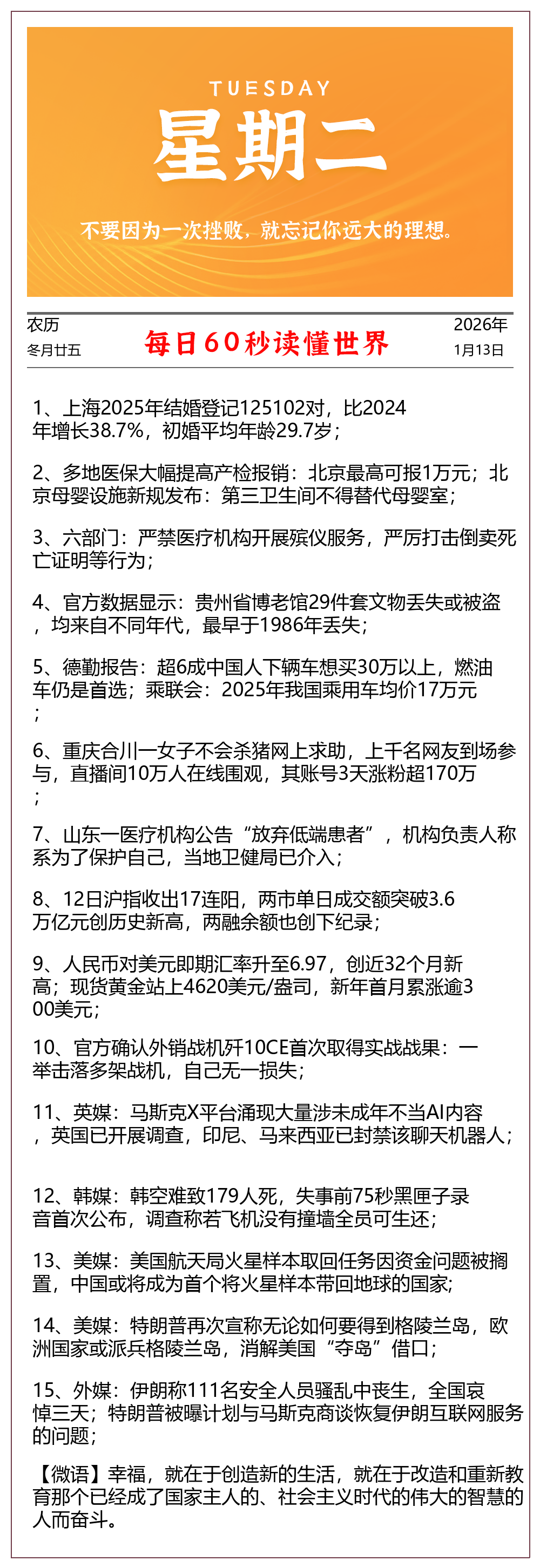 • 15、外媒:伊朗称111名安全人员骚乱中丧生,全国哀悼三天;特朗普被曝计划与马斯克商谈恢复伊朗互联网服务的问题;
