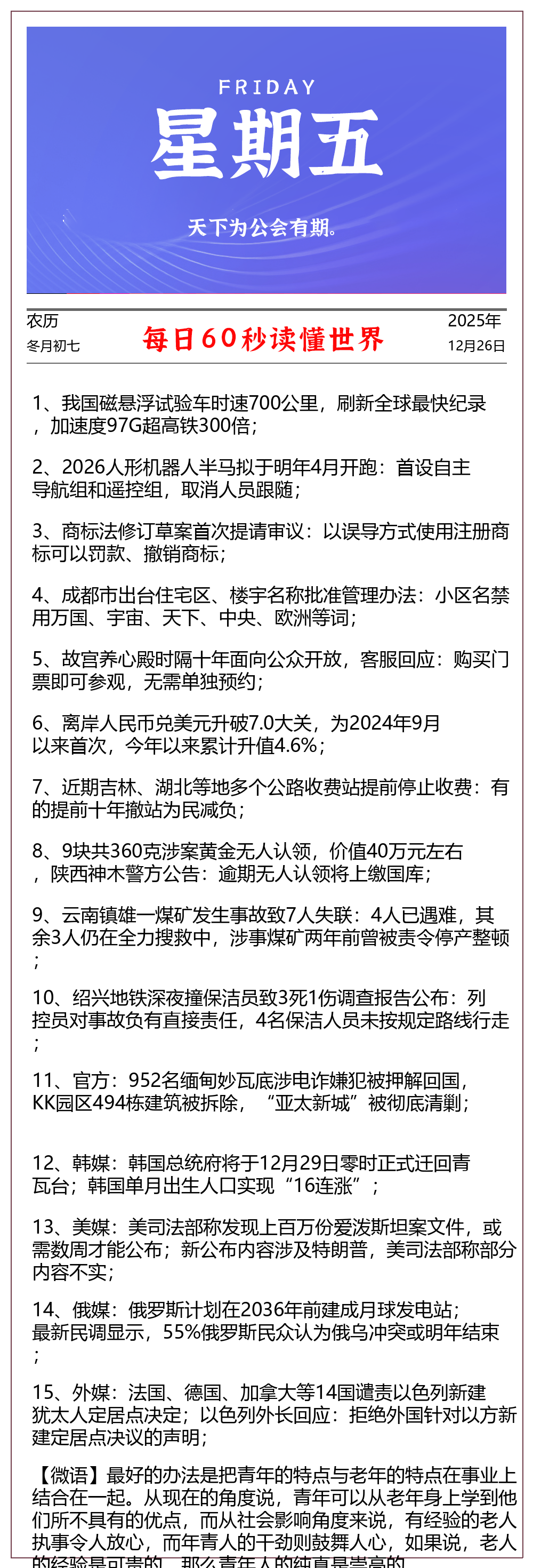 【每日早报】-2025-12-26 - 星期五