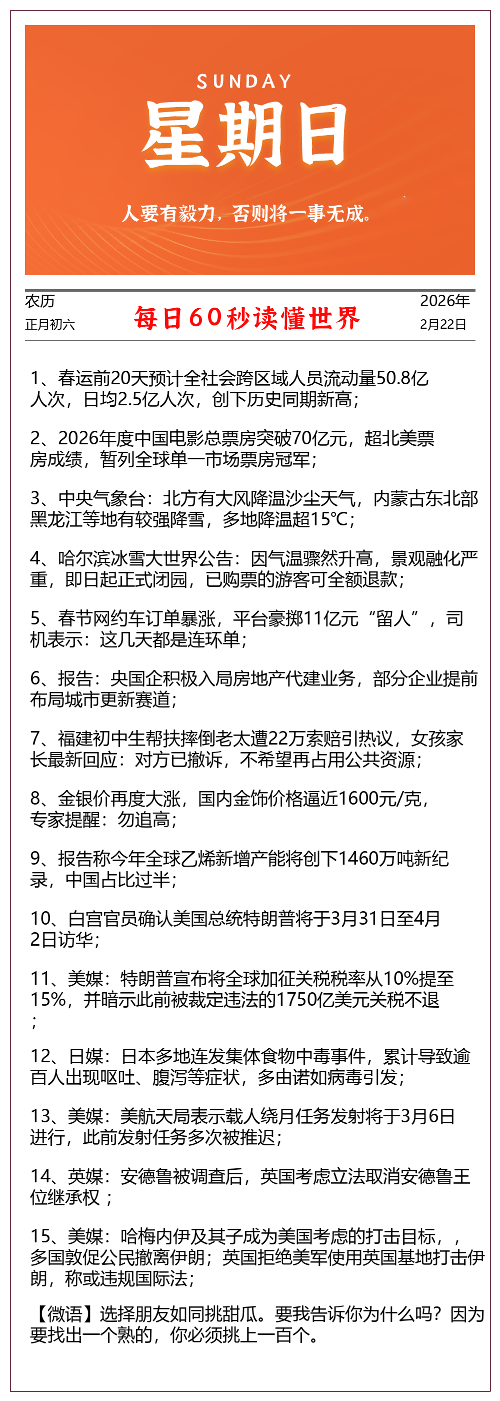 【每日早报】-2026-02-22 - 星期日