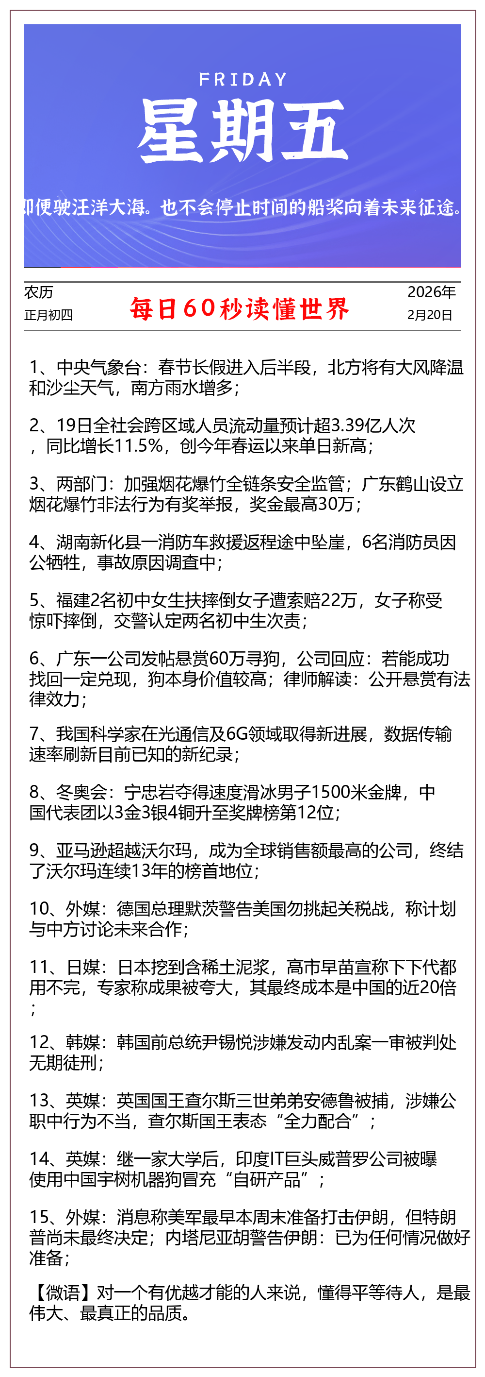 【每日早报】-2026-02-20 - 星期五